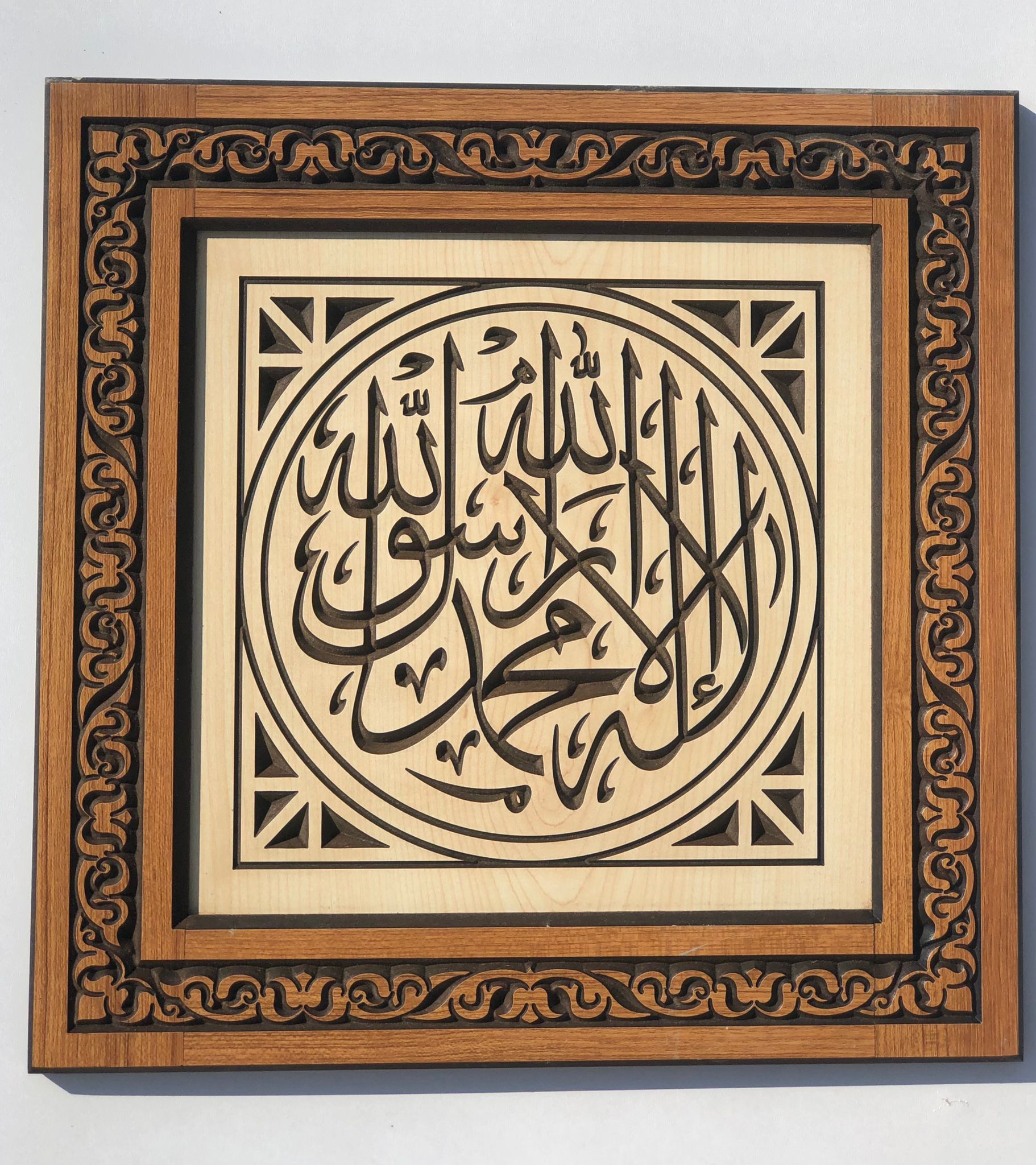 MDF.lam 8+8 iki barçadan ayrı renk dizayn edilerk yazı zemini cnc oyma tekniği kulanılarak işlenmiş olarak çerçevesini tik rengi açık meşe renk dizayn edilmiştir bir çok yazı seçeneğini ünlü hattat ları yazılar değişik oyma teknikleri kulanarak evinize iş yerinize sevdiklerinize hediye olarak yılarca hatıra olarak kalıcı bir hediyeleşebilirsiniz.Tablo çeşitleri AYETEL KÜRSİ,ESMAİL HÜSNA,TURA BESMELE,MİHRAB YAZILARI,ELİFVAV,BESMELE,KEİMEYİTEVHİD,8.Lİ CAMİ TAKIMI,MAŞAALLAH,EDEBYAHU,ALLAH,MUHAMMED,KUFİ YAZILAR DAHA NİCELERİN İSTEK ÜZERE ADETLİ OLARAK PUROMOSYON OLARAK HAZIRLANIR.